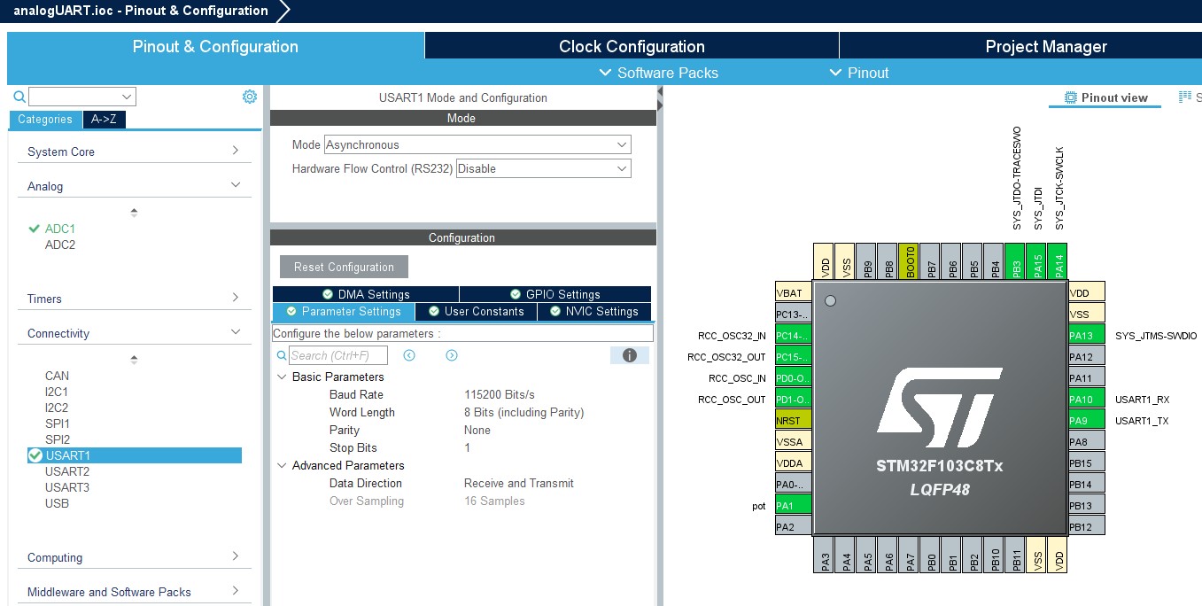 Ejemplo Nº3: Comunicación Serial con STM32: Lectura de Potenciómetros y Envío de Datos.